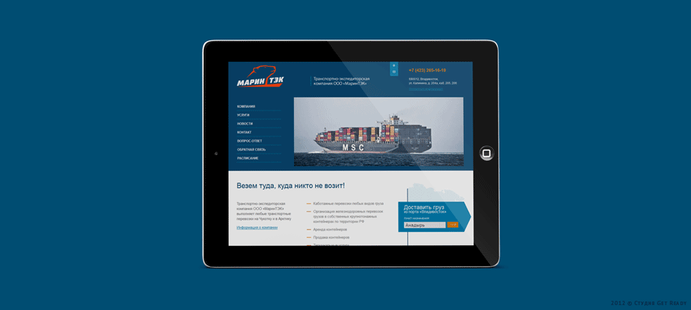 Заказчик — транспортно-экспедиторская компания ООО «МаринТЭК» — выполняет морские перевозки грузов по Дальнему Востоку России из порта Владивостока. Основное направление — районы Крайнего Севера в период навигации.