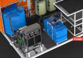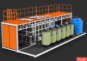 Визуализация инженерной модели станции обратного осмоса. Подготовка трёхмерной модели к визуализации, текстурирование, настройка освещения и камер, рендеринг в разрешении 4000 пикселей по большей стороне, финальная постобработка (ретушь).
